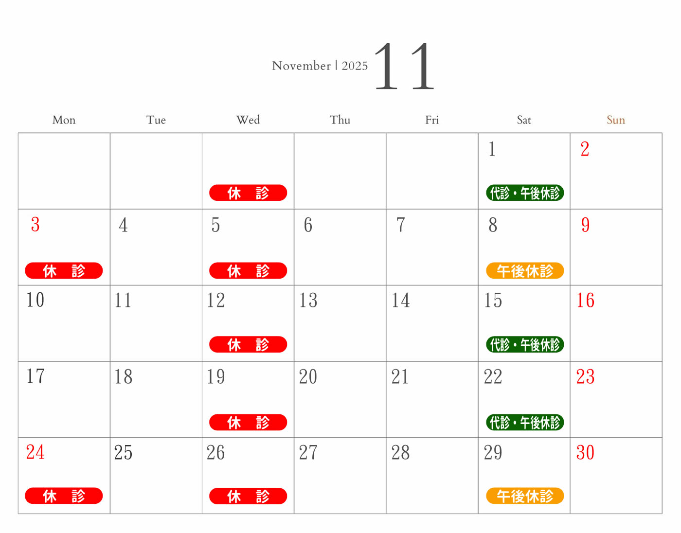 ※11月1日(土)・15日(土)・22日(土)は代診となります。